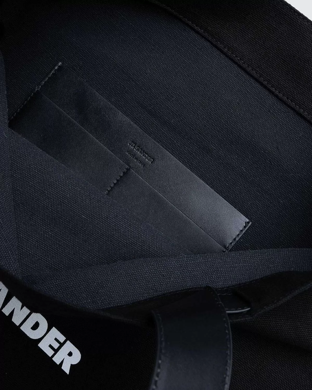 Et Slidstærkt Bomulds- Og Hørlærred Bruges Til Kroppen Af Jil Sander-Bogstasken, Da Håndtagene Er Det, Der Tiltrækker Opmærksomhed, Og De Kommer Frem I Plyslæder. Læder Er Også Brugt På Den Indvendige Lomme På Tasken, En Der Giver Dig Mulighed For Mere Bekvemt At Opbevare Mindre Genstande. Med Hensyn Til Branding Er Bogpakken Detaljeret Med Et Minimalt Logo, Etikettens Signatur, Front Og Center.