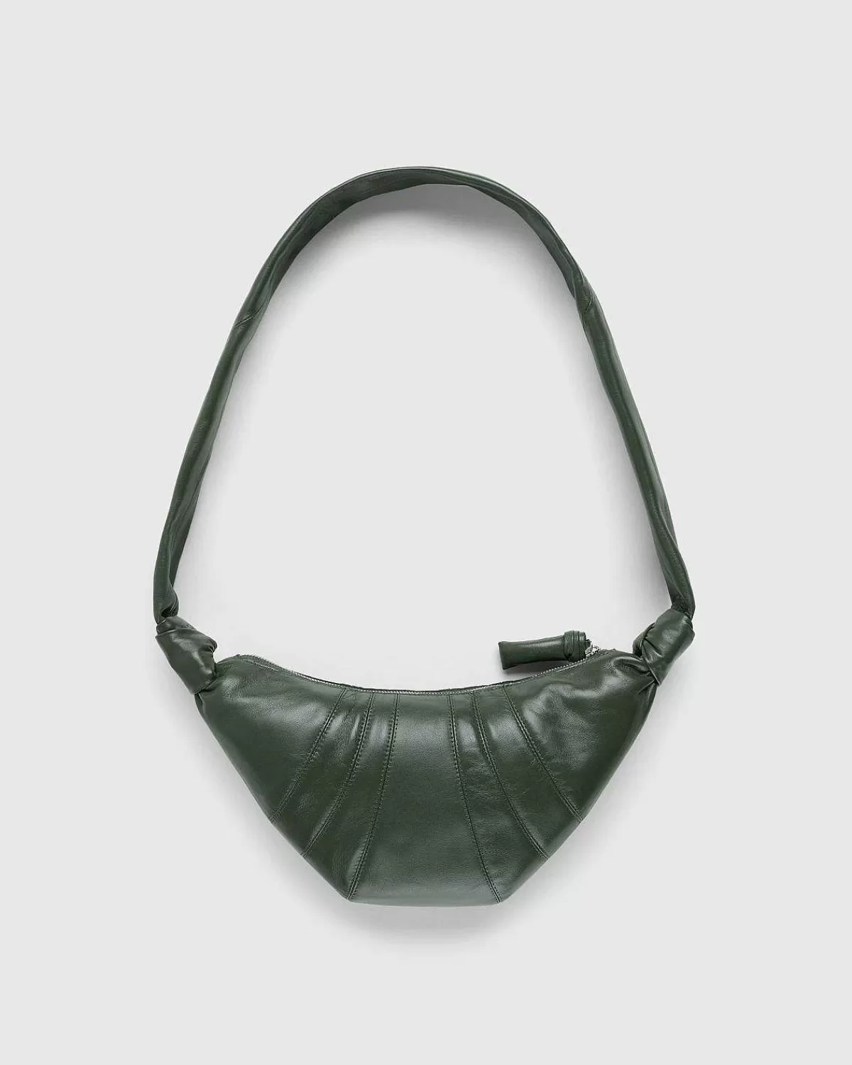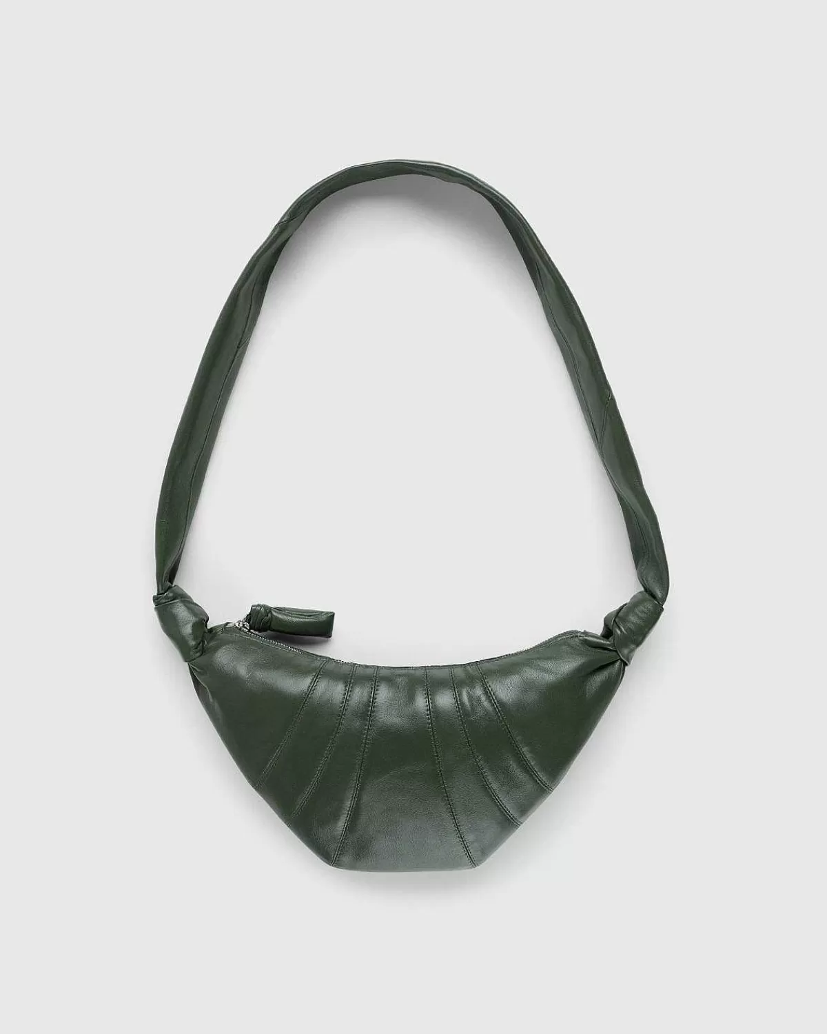 Inspireret Af Lemaires Karakteristiske Croissantfamilie, Henter Den Lille Croissanttaske Designinspiration Fra Formen Af Et Croissantkage. Varemærkestilen Er Ekspertudviklet Af Et Blødt Kornet Lammelæder, Der Er Smidigt, Men Alligevel Modstandsdygtigt, Og Som Vil Blive Blødt Over Tid For At Forme Til Den Individuelle Bærer. Topsyede Udskæringer Følger De Ergonomiske Linjer I Pungen, Som Er Detaljeret Med Sideknudefinish Og En Metallynlås Med En Matchende Lynlåstrækker.