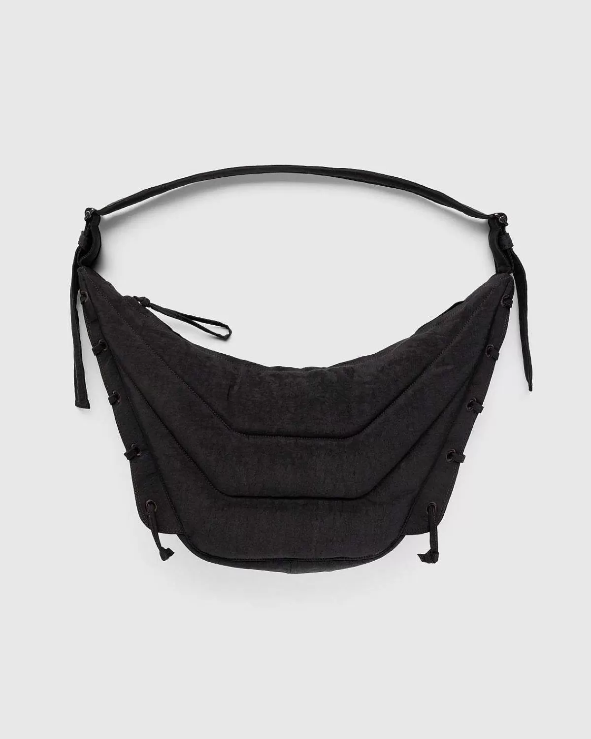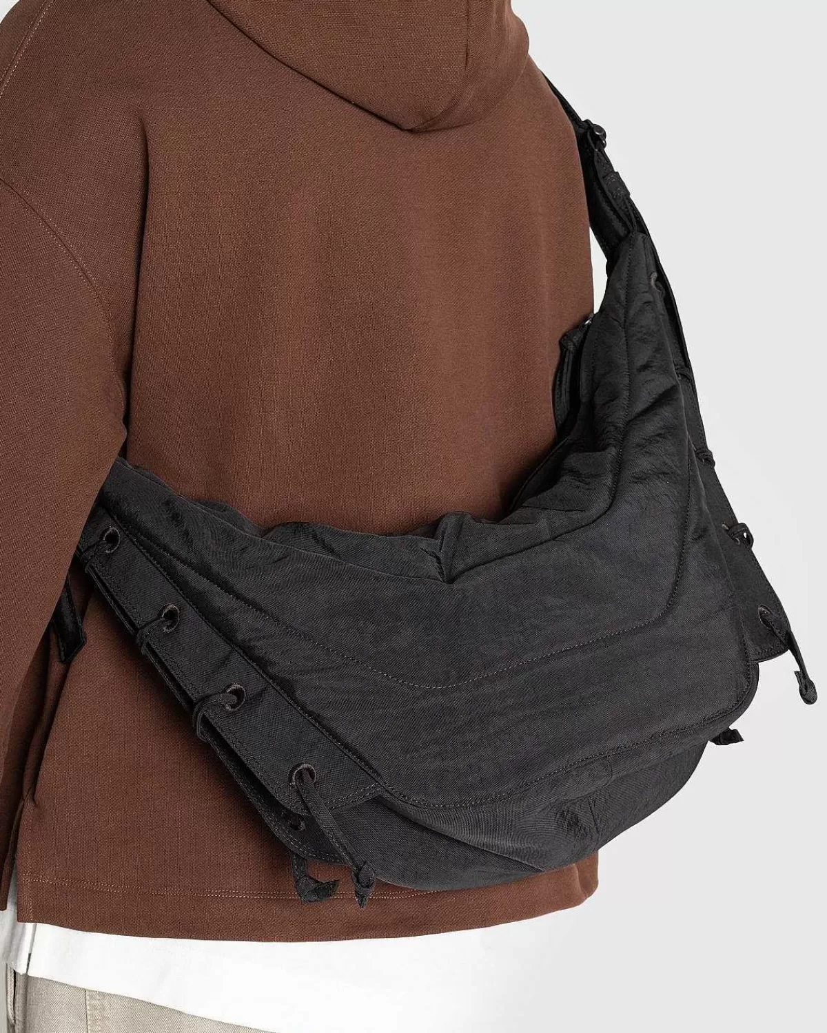 Den Bløde Spiltaske Er Inspireret Af Lemaires Signatur-Croissant-Taske Med Broderede Øjer Og Snørebånd I Selvstof, Der Lukker Sig I Siderne Af Silhuetten. Snørebåndene, Der Væves Ind Og Ud Af Øjerne, Giver Dig Mulighed For At Justere Taskens Volumen. Konstrueret Af 100 % Nylon, Stilen Er Vandafvisende Og Har Nylonfor. Med En Justerbar Rem Kan Du Bære Denne På Skulderen Eller Som En Crossbody-Stil.