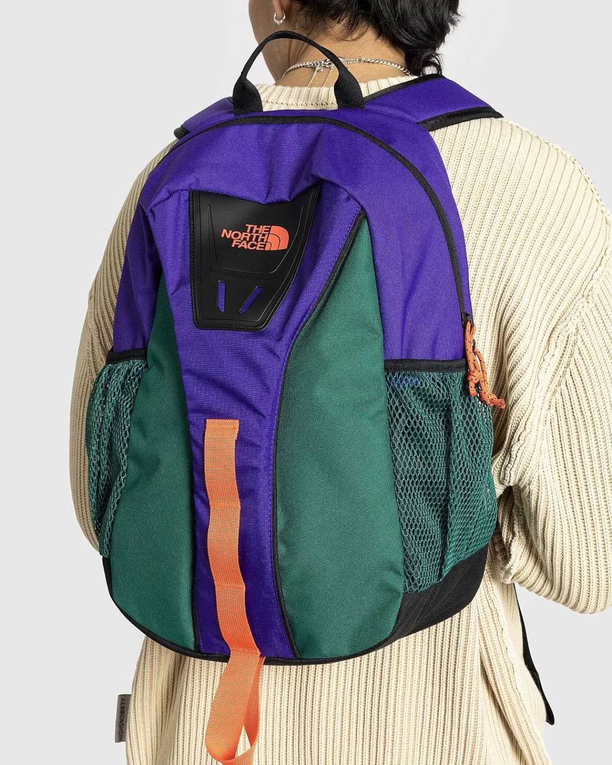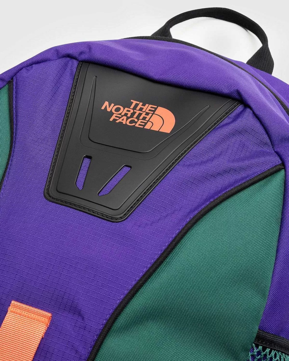 Denne Tnf Daypack, Der Tegner Fra Y2K-Stil, Viser Et Sjovt Farveblokeret Look. Tasken Er Overvejende Konstrueret Af Genbrugspolyester Og Har Et Standard Tophåndtag Samt Polstrede Skulderstropper. Pakkens Rummelige Interiør Er Monteret Med Meshlommer Og Et Polstret Laptop-Hylster, Mens Yderligere Mesh-Vandflaskelommer Er Indbygget På Siderne Af Silhuetten. Tnf-Logoer Varemærke Stilen På Forsiden Samt Remmen.