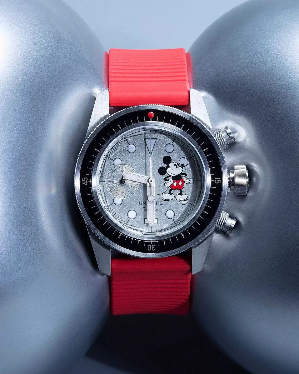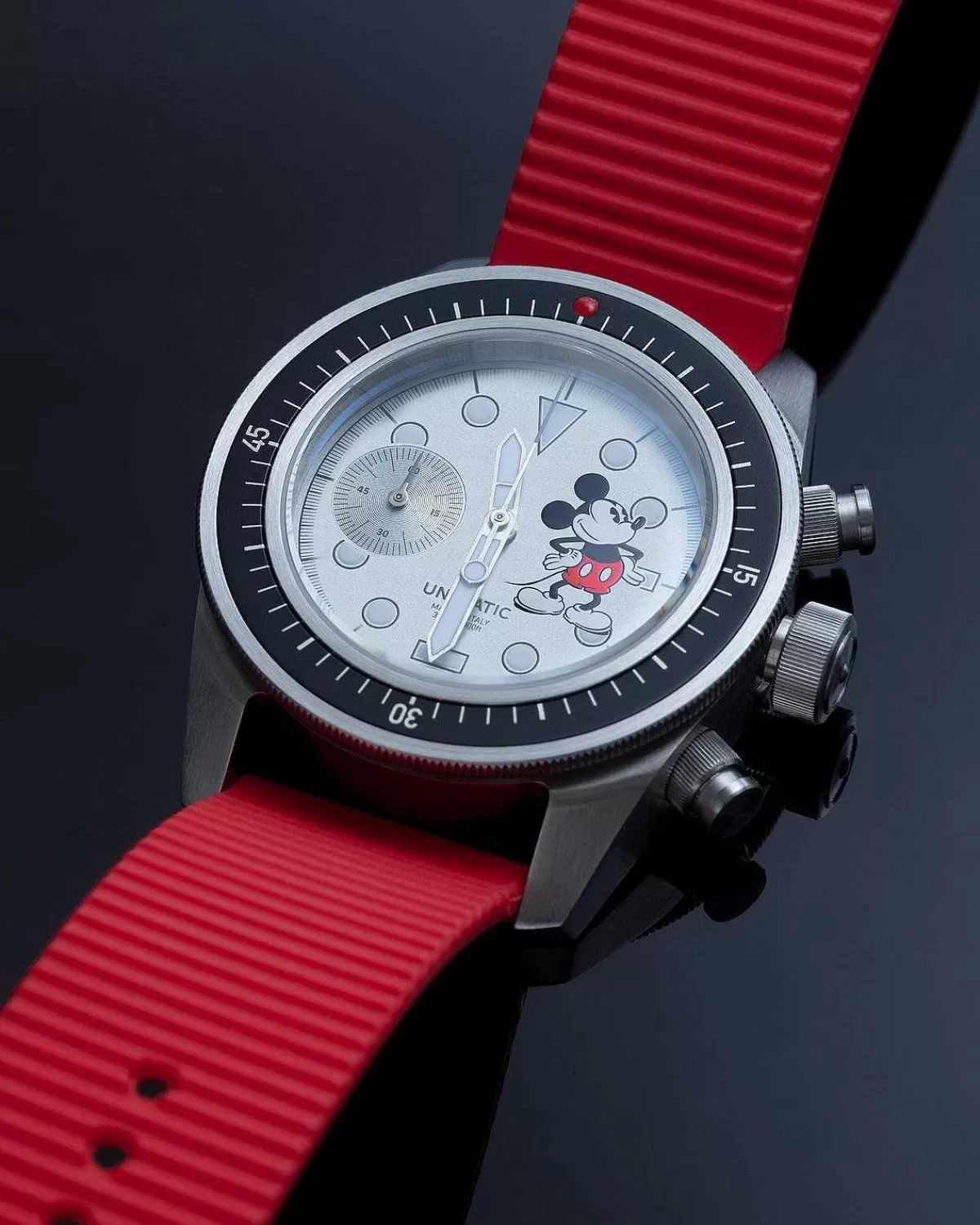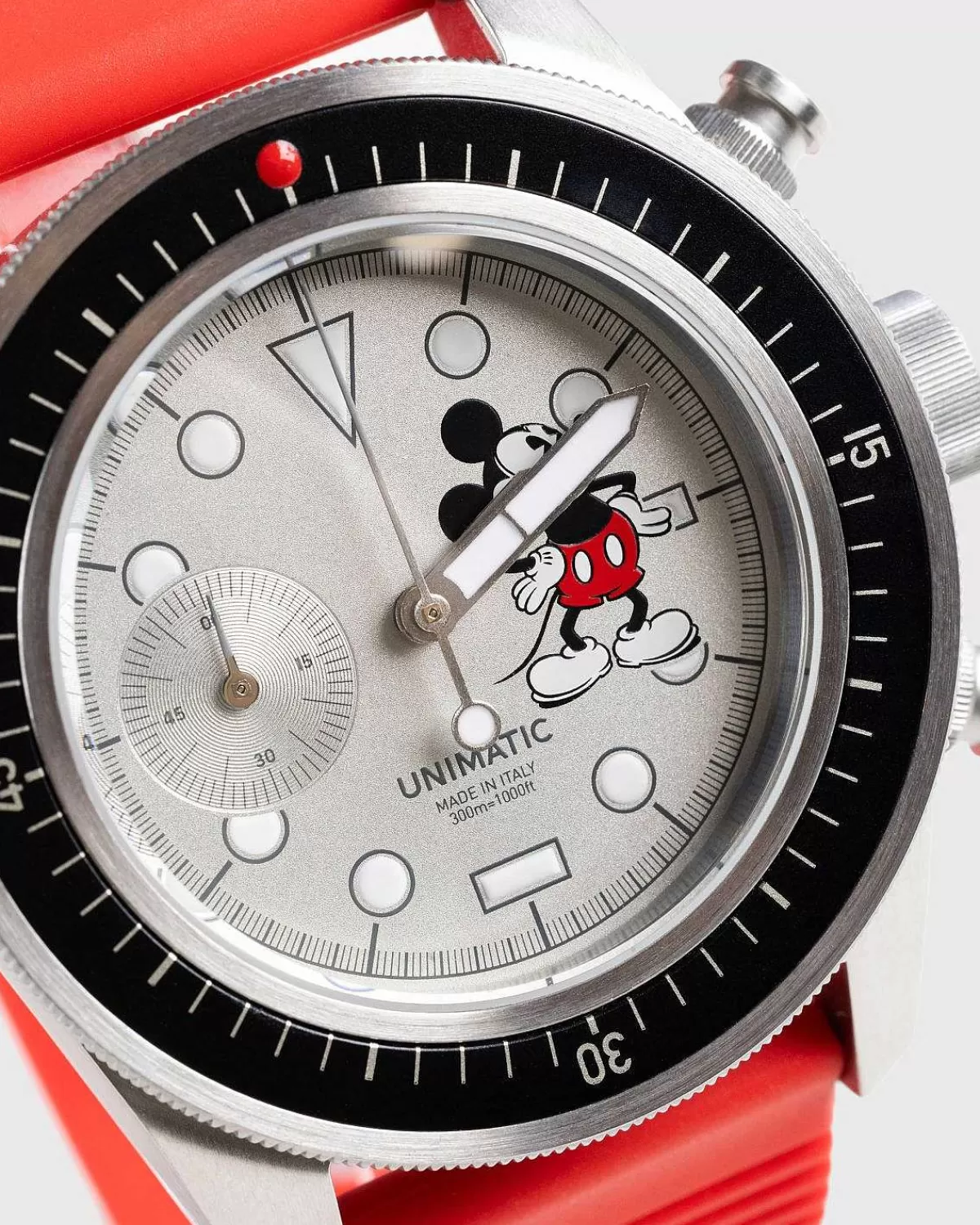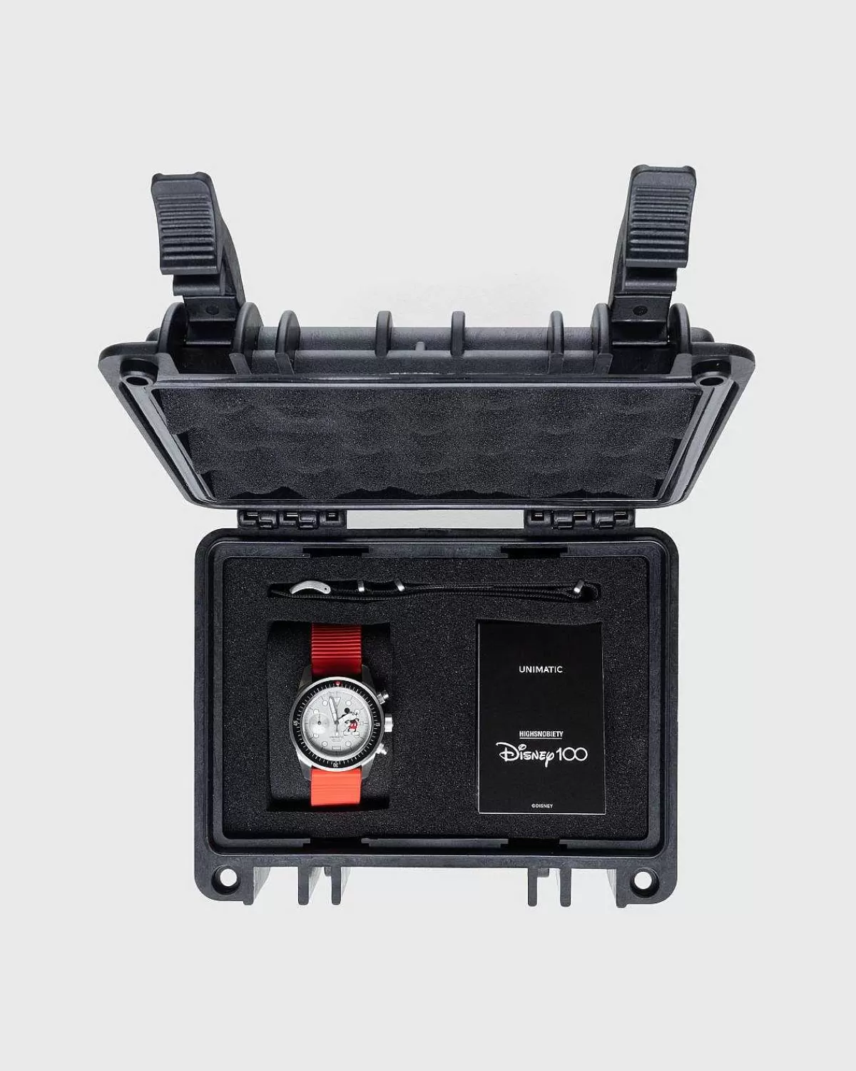 Denne Eksklusive Chrono Diver Fra Vores Unimatic X Disney X Highsnobiety-Samarbejde Fejrer 100 Års Disney. Uret I Begrænset Udgave Er Lavet I Italien Og Leveres Individuelt Nummereret Med Kun 100 Lavet. Dens Cool Grå Urskive Viser Mickey Mouse-Illustrationen Fra 1929, Indkapslet I En Robust 40 Mm Rustfri Stålskal. Bagsiden Af Etuiet Er Specialindgraveret Med Disney100-Logoet Og Året For Mickey’S Ikoniske Tegning. Modello Tre U3-Hs Er Ikke Bare En Hyldest Til Disneys Arv, Men Også Gennem Unimatics Designsprog En Reference Til Urets Mest Ikoniske Ure. Hvert Ur Præsenteres I Skræddersyet 100-Års Jubilæumsemballage – En Sand Samlerperle.