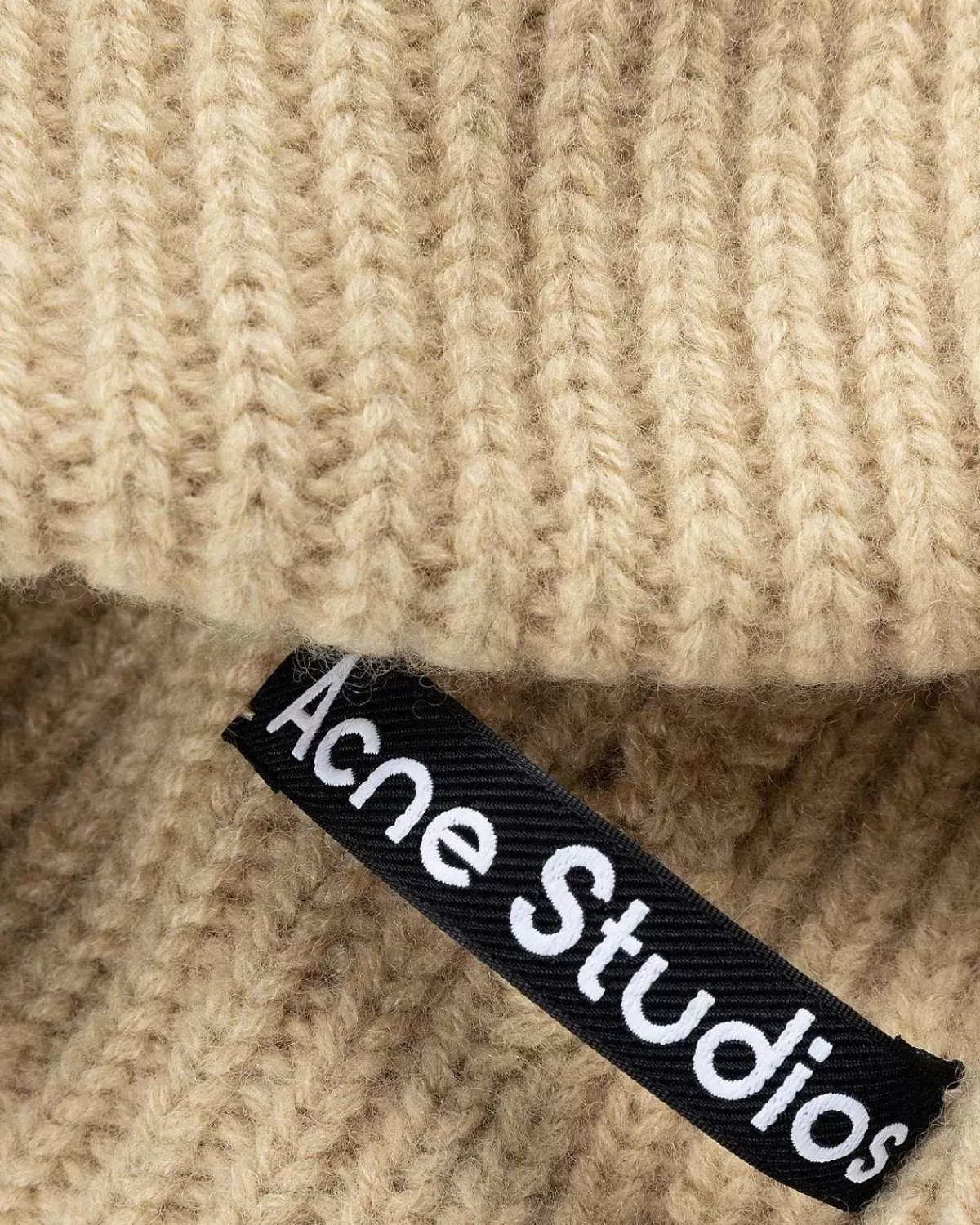 Acne Studios’ Signaturbeanie Med Store Ansigtslogo Er Betydeligt Minimal, Men Lige Så Alsidig, Med Et Sort Monokromatisk Design, Der Inkorporerer En Tonal Ansigtslap Foran. Uldhovedbeklædningsstilen Har En Tyk Ribbet Tekstur Og Opadvendt Kant, Der Giver Et Look, Der Er Lige Dele Moderigtigt Og Funktionelt Når Det Er Koldt Vejr.