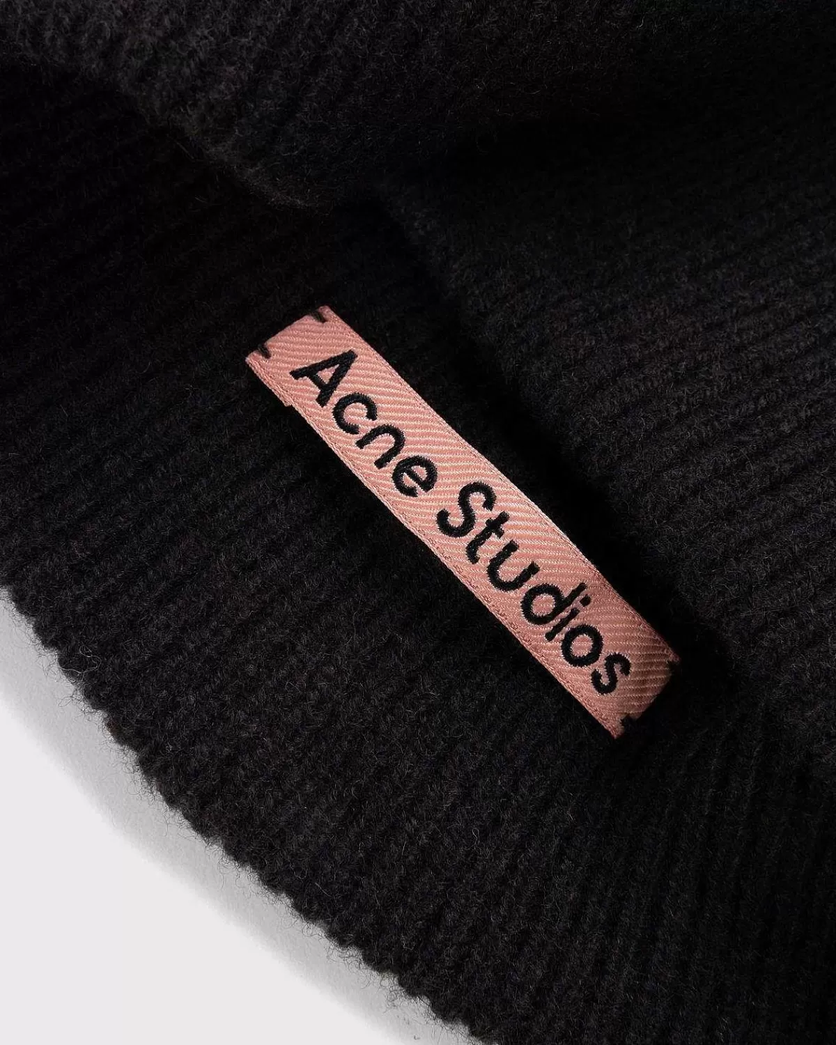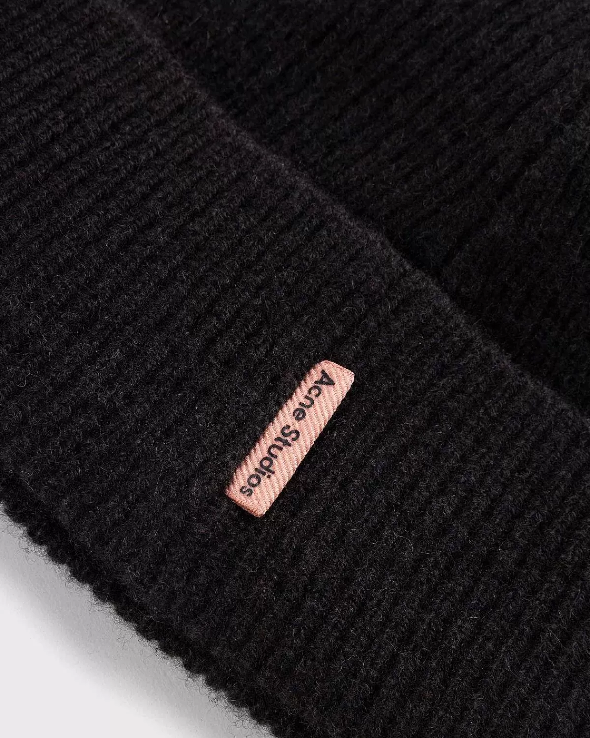 Acne Studios’ Wool Cashmere Beanie Er Et Meget Alsidigt Stykke Hovedbeklædning, Med Et Monokromatisk Design, Der Indeholder Et Lille Logomærke. Hovedbeklædningsstilen Har En Ribbet Tekstur Og Opadvendt Kant.