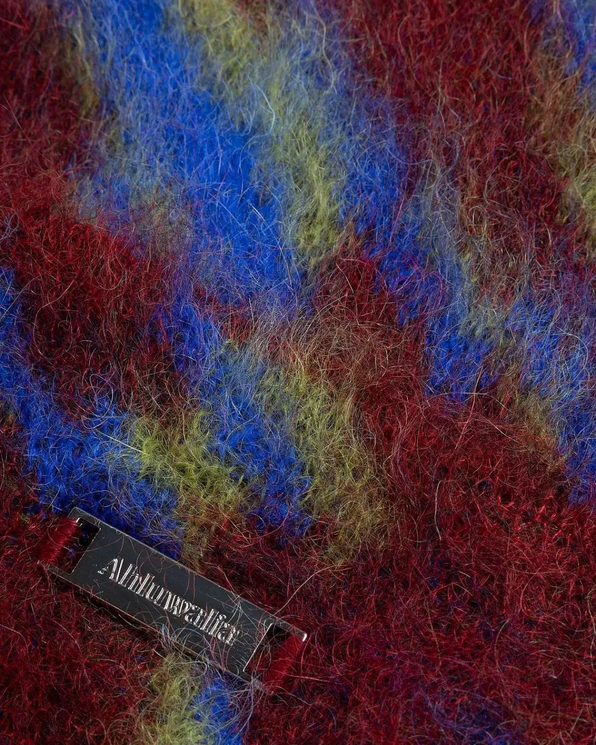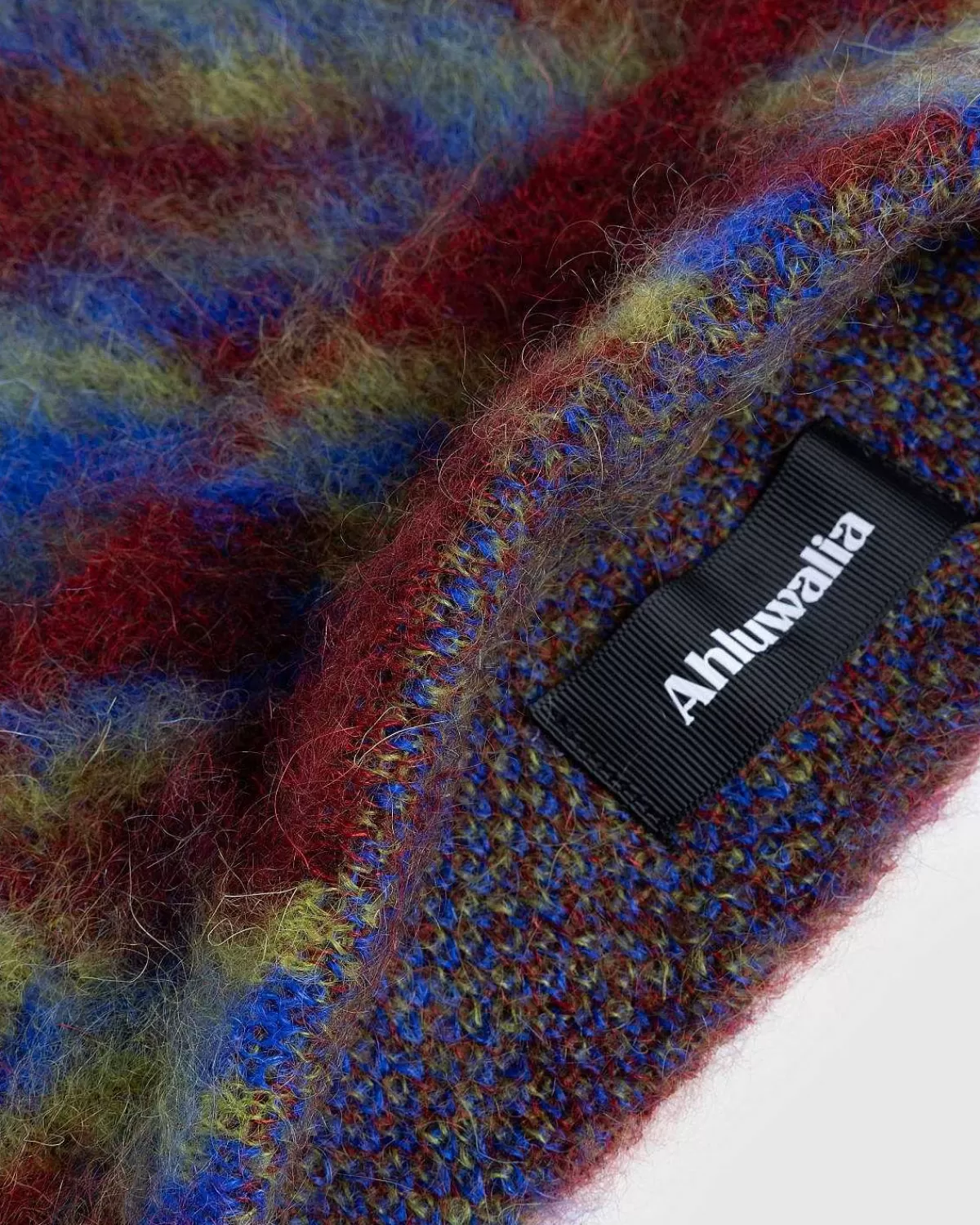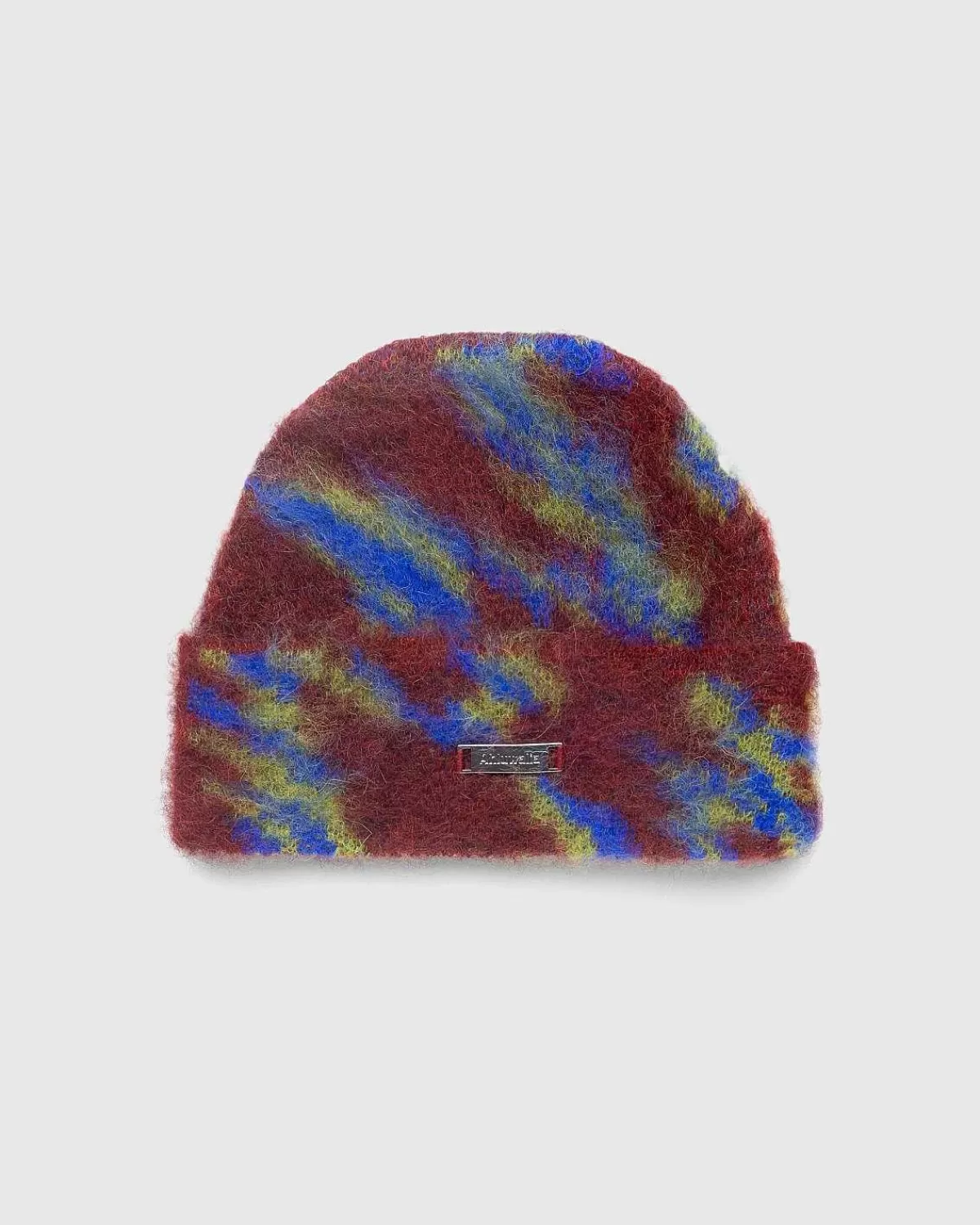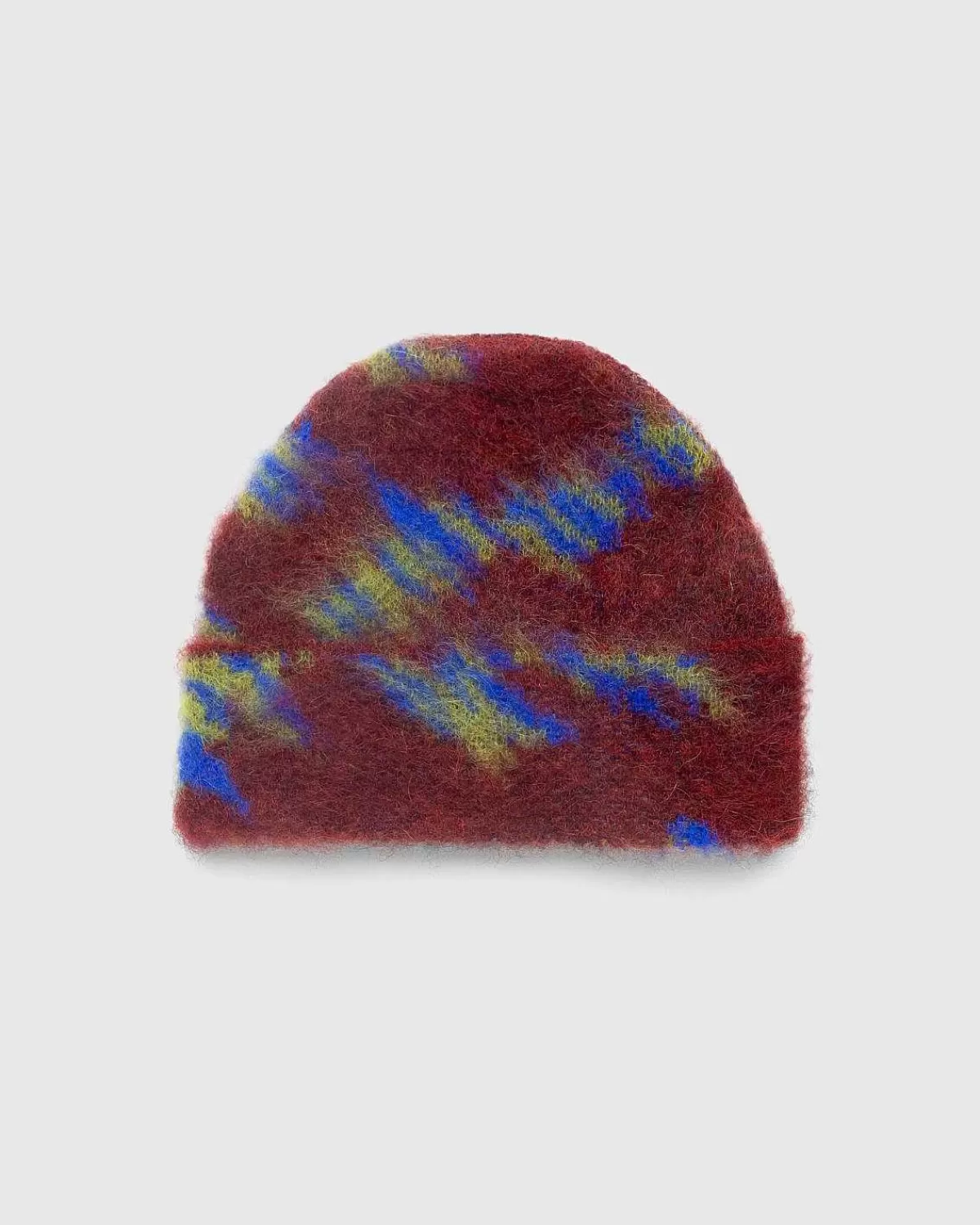 Et Legende Bud På En Klassisk Hovedbeklædningsstil, Ongoye Beanie Viser Et Overordnet Motiv Med Indslag Af Periwinkle Blå Og Tropisk Gul Mod Rødbrun Mohair-Garn Hentet Fra Etiske Landmænd. Den Har En Traditionel Opadvendt Kant Detaljeret Med Mærkevarehardware.