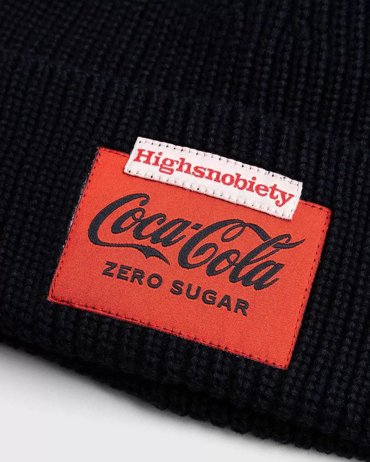 Denne Hue Kommer Som En Del Af Vores Samarbejde Med Coca-Cola Zero Sugar, Der Henter Inspiration Fra Arbejdstøj. Beanien Ankommer I En Monokrom Farvevariant Og Har En Opadvendt Kant Med Vævede Logoer Med Fælles Mærker.