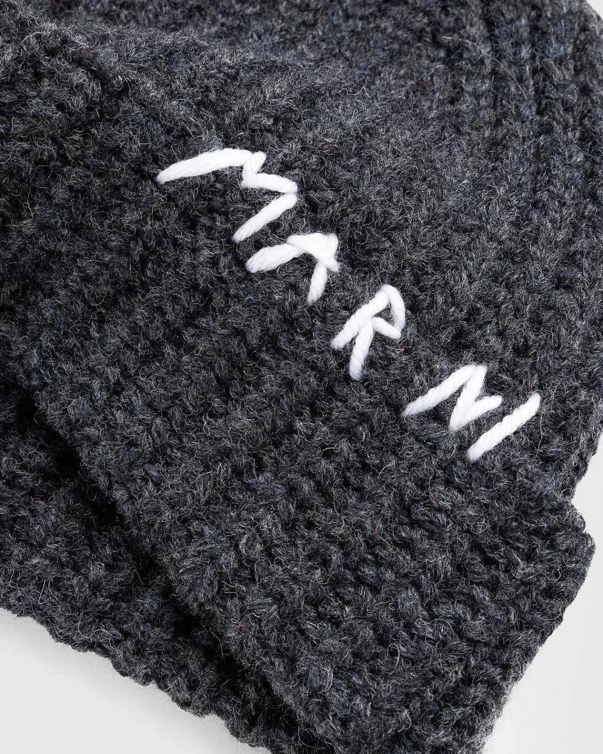 Dette Tykke Og Hyggelige Tilbehør Er Lavet Af Blødt Shetlandsuld Og Kommer I En Tonal, Grå Nuance Med Distressed Detaljering Overalt. Langs Den Opslåede Kant Kan Du Finde Marnis Navn Håndsyet I En Kontrastfarve Med Alpaca-Garn.