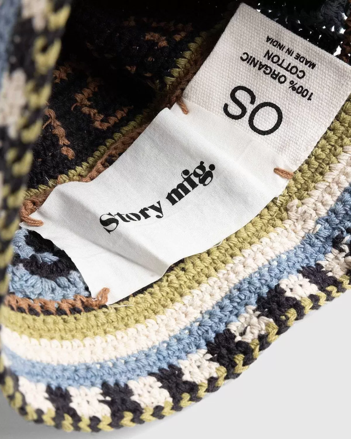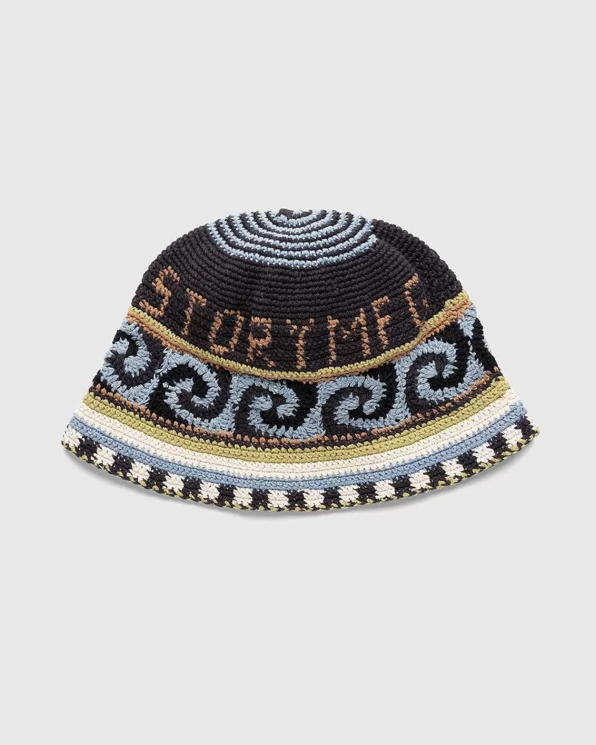 Hvis Dit Hovedbeklædning Arsenal Trænger Til En Opfriskning, Så Kig Ikke Længere End Bryggehatten Efter Historiefabrikant. Silhuetten Er Håndhæklet Ved Hjælp Af Helt Økologisk Bomuldsgarn Og Pyntet Med En Naturlig Farvebehandling. Story Mfg. Branding Vikler Sig Om Toppen Af Hatten, Placeret Over En Række Hvirvlende Symboler.