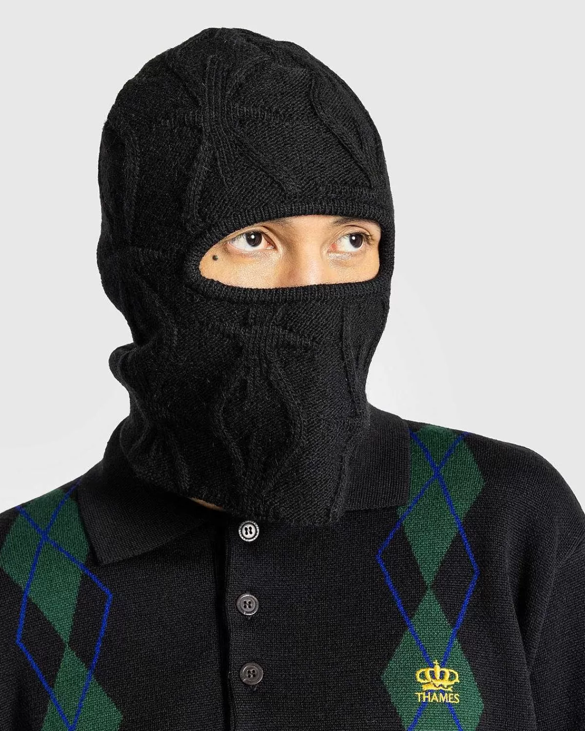 Thames’ Starlink Bally Fungerer Også Som En Balaclava Og En Hue. Vinterhovedbeklædningen Er Fremstillet I Et Blødt Alpakauldsstof, Der Ankommer I En Alsidig Sort Farvevariant, Der Passer Til Gentagen Brug. Den Har En Central Ansigtsåbning Og Er Defineret Af Et Starlink-Kabelmotiv Overalt I Thames.